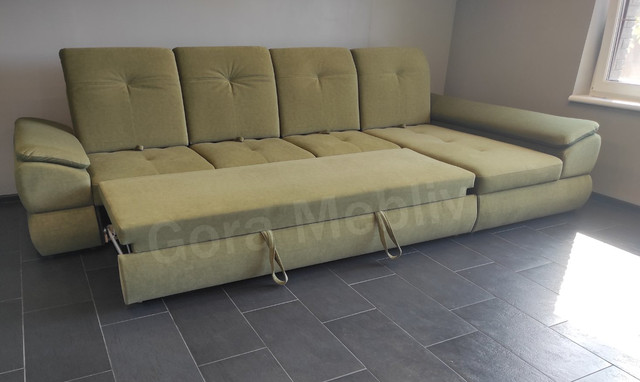 За допомогою простого та надійного механізму трансформації "Дельфін", кутовий диван перетворюється на повноцінне ліжко з розмірами спального місця: 1500х2800 мм (у розкладеному стані спинок). У складеному стані спинок, ширина спального місця: 1300 мм.