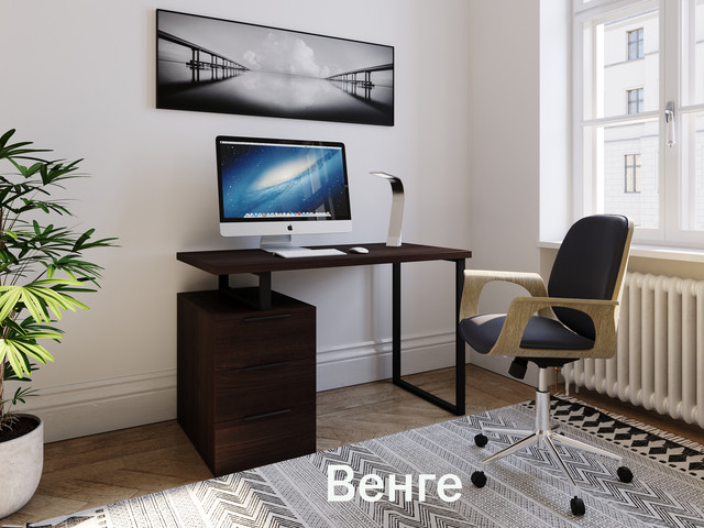 Письмовий стіл МХ-0003 обладнаний міцною металевою рамою, покритою порошковою фарбою і зручною тумбою з трьома шухлядами, що забезпечує додатковий простір для зберігання документів, канцелярського приладдя та інших важливих речей. Тумба розташована під стільницею, що дає змогу зберігати робочу поверхню максимально вільною. Шухляди обладнані телескопічними напрямними, що забезпечують плавний хід і зручність використання.